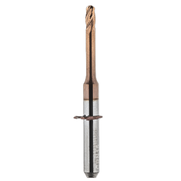 The multitude of non-precious alloys in the market increase the requirements for milling tools. This newly developed quadruble edge cutter is an answer to these new challenges. Thanks to its four cutting edges and an optimized geometry, it achieves a significantly improved roughing with longer service life and increased processing safety, even when processing difficult-to-work metals. This means that finally, almost all CoCr alloys and titanium alloys can be processed reliably.