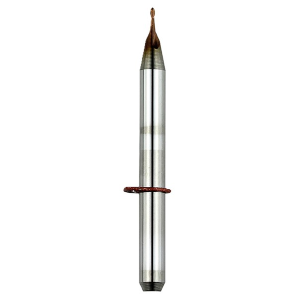 Radiusfräser zweischneidig, Schneide Ø 0,6 mm, Schaft Ø 3 mm, Gesamtlänge 32 mm. Für Blanks bis max. 16 mm Höhe.